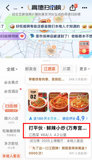 江西上榜4家!高德掃街榜發(fā)布全國(guó)TOP100餐廳榜單