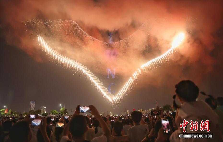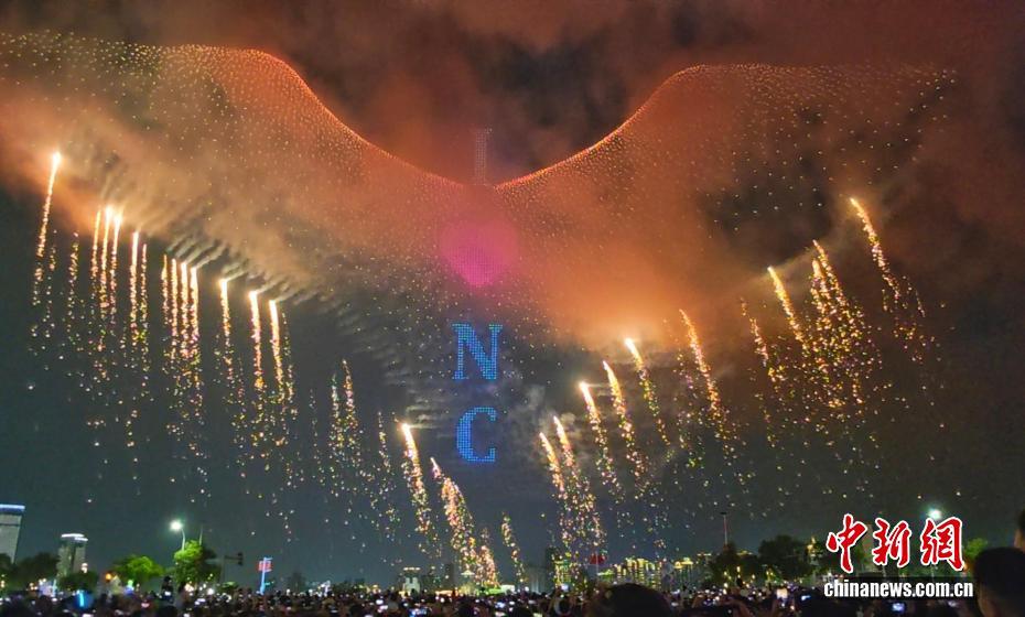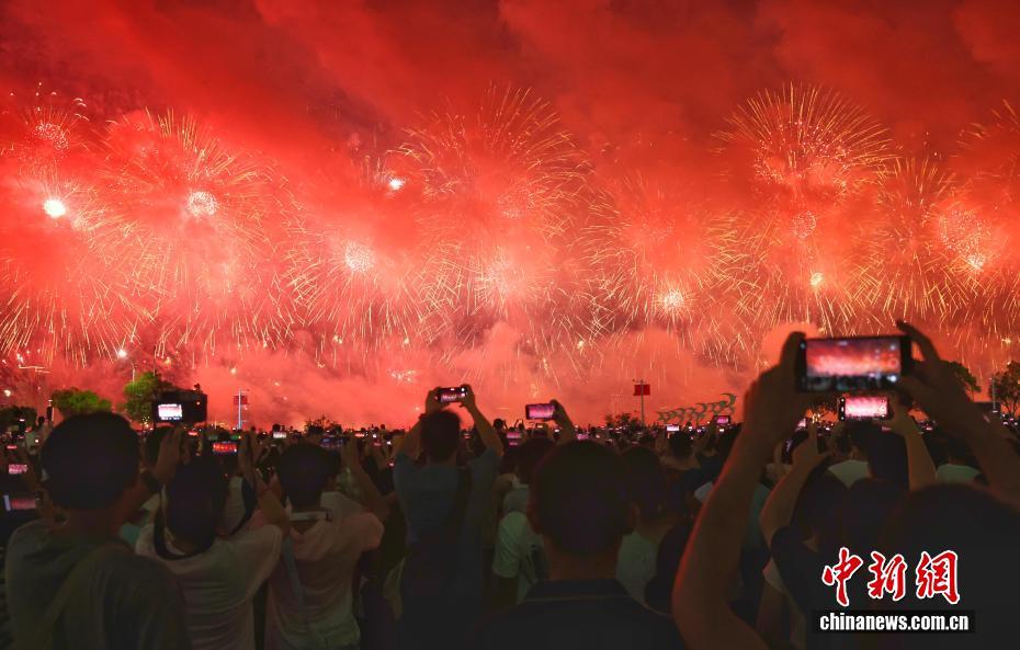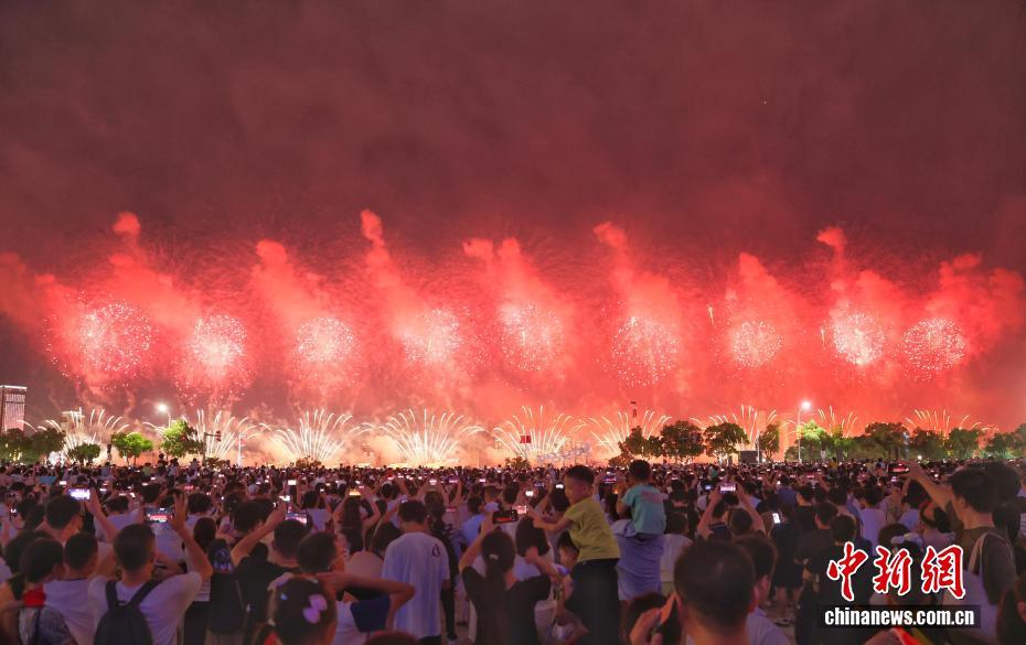 2025年南昌市國慶煙花晚會舉行 民眾欣賞璀璨煙花(圖)