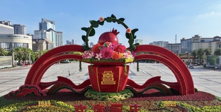 南昌:“盛裝”迎國慶 滿城“中國紅”(圖)